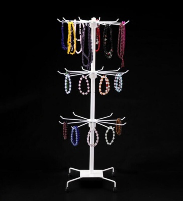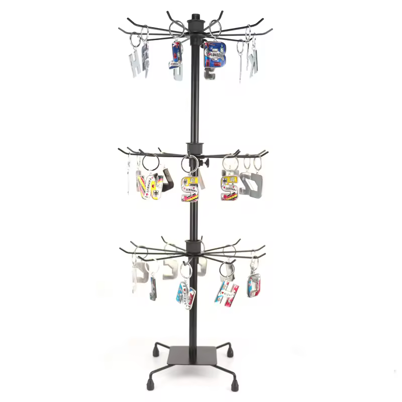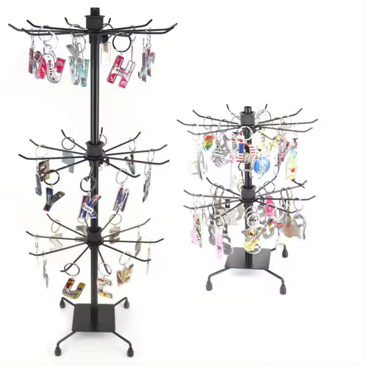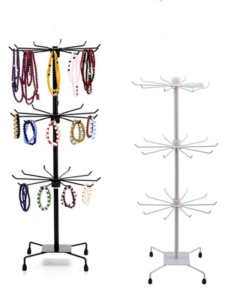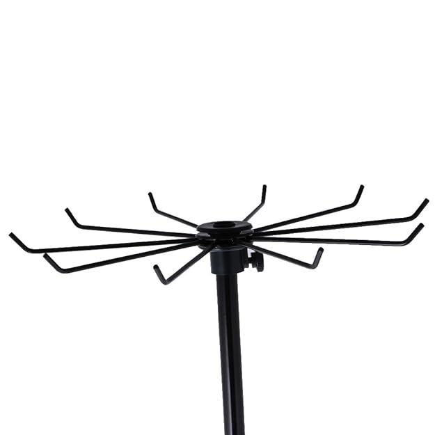 Mešanica moči in elegance: izdelano iz kovanega železa, s premazom, odpornim proti rjavenju, vrtljivo stojalo za prikaz nakita nudi trdno in zanesljivo delovanje v kombinaciji z elegantnim videzom, ki se brez truda ujema z različnimi okraski, hkrati pa zagotavlja dolgotrajno uporabo