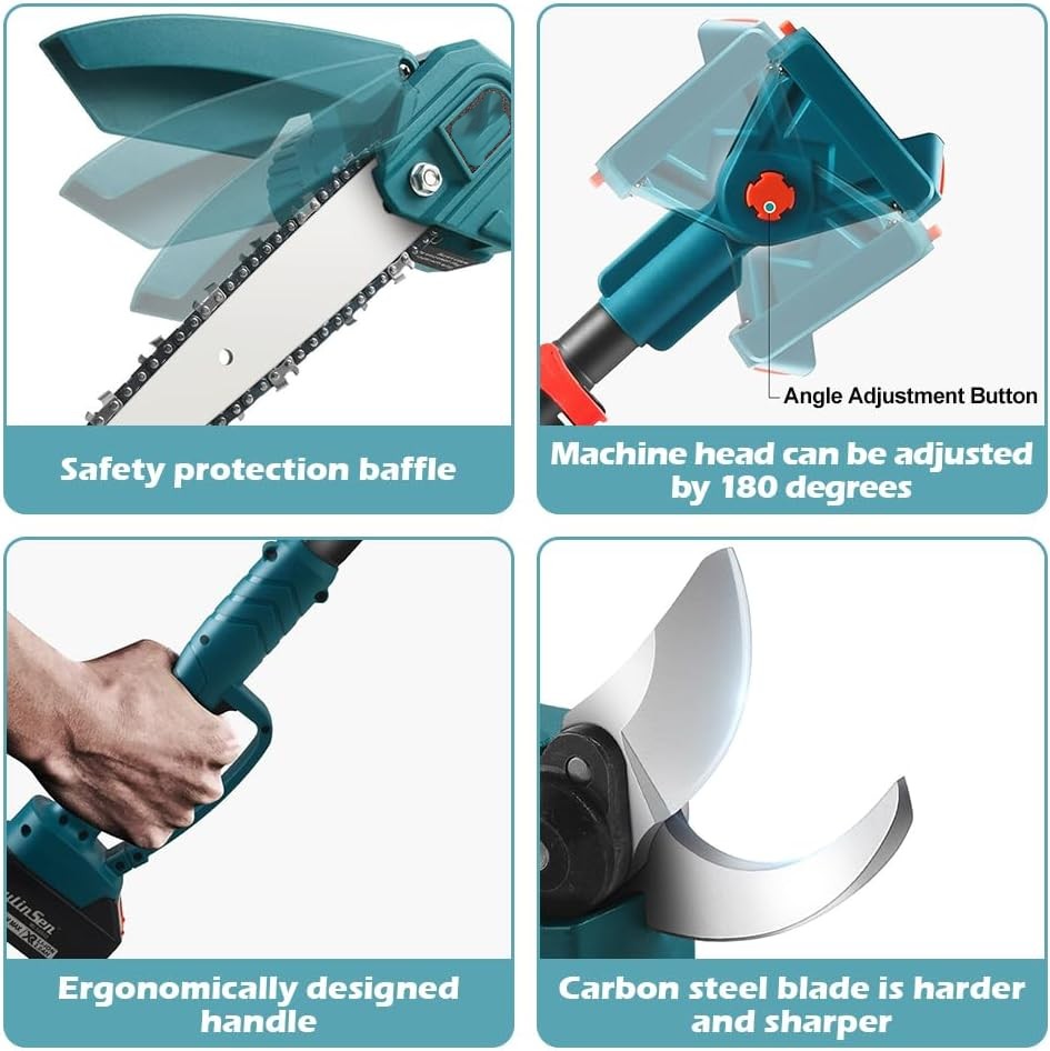 ✅ Električna žaga in škarje za obrezovanje razširijo možnosti dela in omogočajo opravljanje različnih vrst del v sadovnjaku ali vrtu.