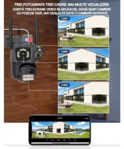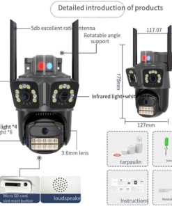 8K 360-stopinjska CCTV kamera – s 3 objektivi, WiFi, PTZ, zvok, alarm, IP66