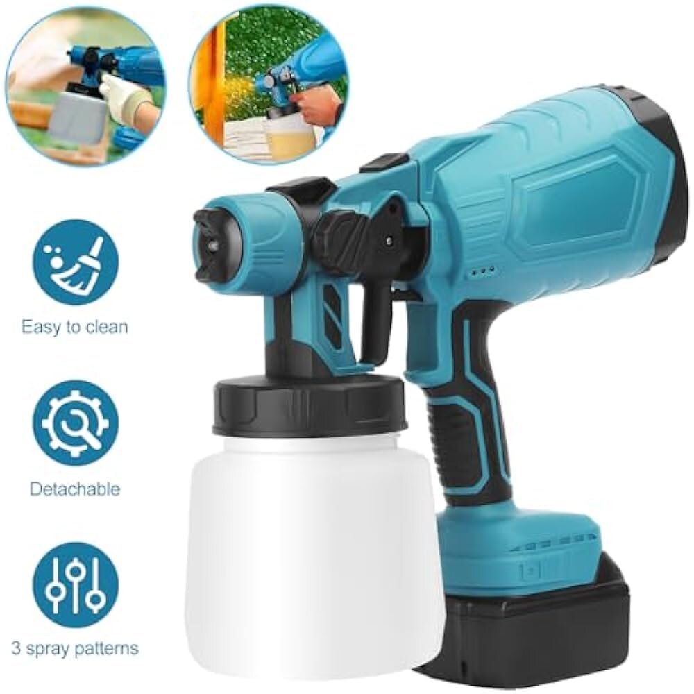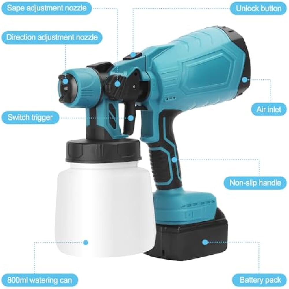 ✨Baterijska pištola za brizganje barve se prilagodi vašim potrebam. Njegove lastnosti vključujejo tudi regulacijo količine zraka in barve. Zahvaljujoč temu lahko stvarem z različnimi vrstami površin vdahnete novo življenje.