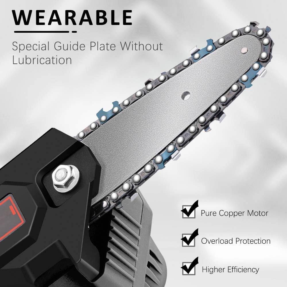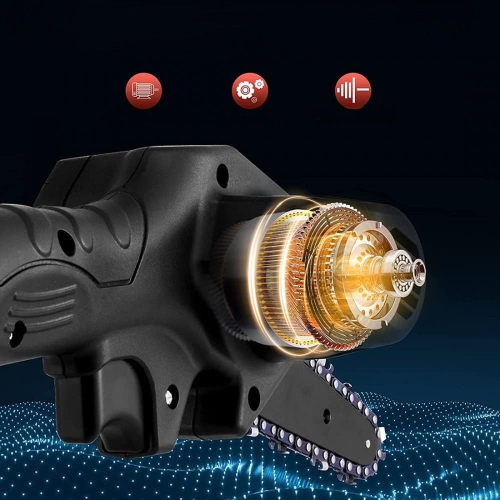 Akumulatorska žaga se ponaša s kakovostno verigo, izdelano z zahtevnim postopkom, ki omogoča izjemno natančen rez. Poleg tega ima mini žaga Brenchie izjemno močan motor. Učinkovitost rezanja je večja in hitrejša.