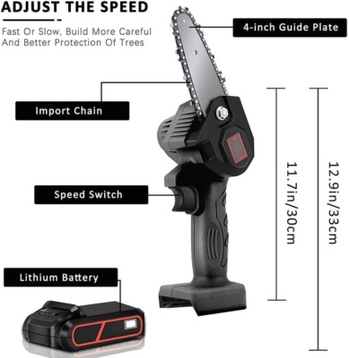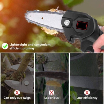 Akumulatorska mini ročna žaga Brenchie je idealna za obrezovanje dreves, rezanje vej in vrtnarjenje. Zmogljivost akumulatorja je 1300mAh, 27,75 Wh