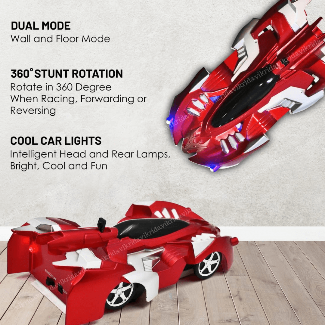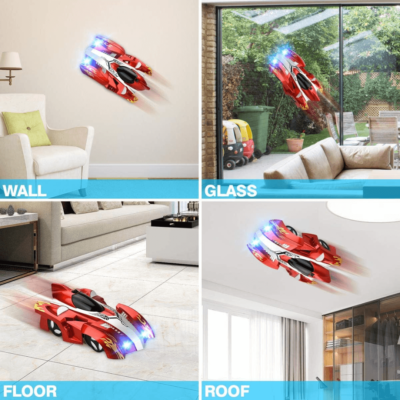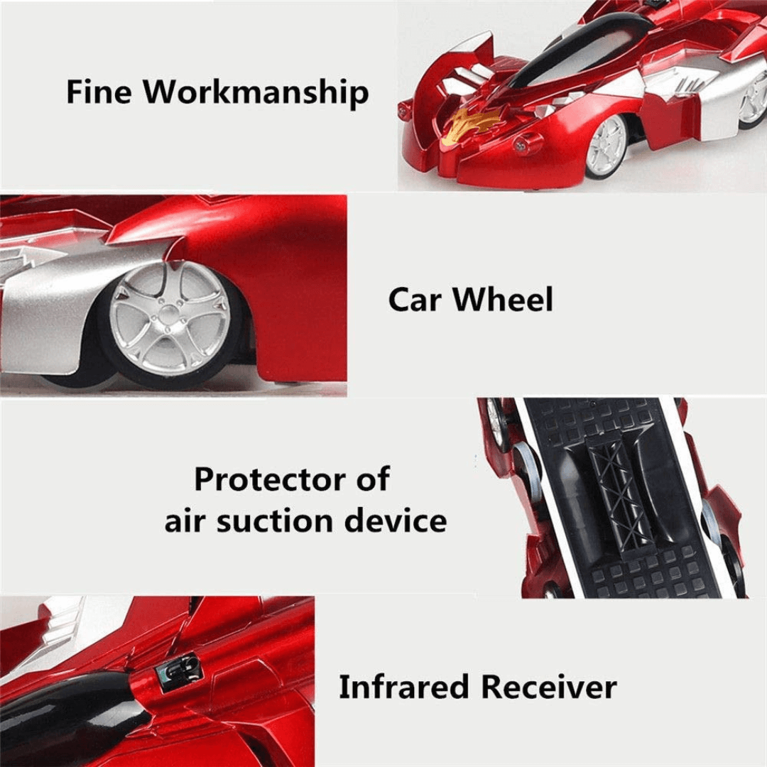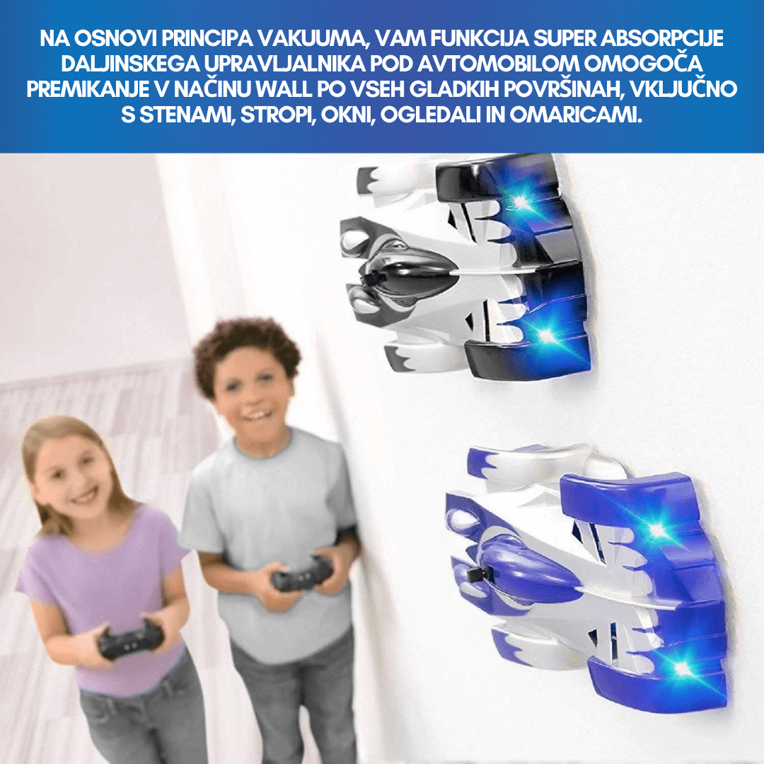 💯Na osnovi principa vakuuma, vam funkcija super absorpcije daljinskega upravljalnika pod avtomobilom omogoča premikanje v načinu WALL po vseh gladkih površinah, vključno s stenami, stropi, okni, ogledali in omaricami. V načinu FLOOR se lahko avtomobil premika hitreje kot vsi običajni dirkalni avtomobili.