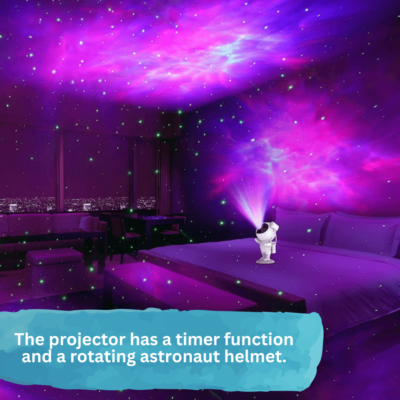 ✨Astronavtski laserski projektor 8 učinkov – Aurora light galaxy projection + laser je prenosni pripomoček, ki prinaša čarobnost vesolja v vsako sobo. Z 8 učinki meglice, utripajočimi zvezdami in različnimi nastavitvami ustvari sproščujoče vzdušje v vaši notranjosti. Projektor ima funkcijo časovnika in vrtljivo astronavtsko čelado. Ozračje in svetlost lahko preklapljate z daljinskim upravljalnikom.