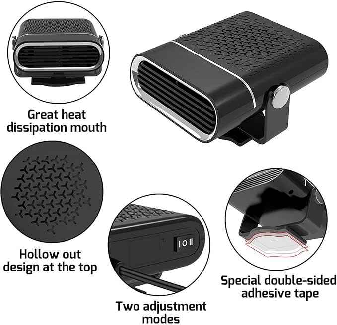 💗1. Dva-v-enem Funkcija: Ta avto ventilator grelnika lahko udarec naravni veter in topli zrak, in je namenjen za hitro čiščenje mraz in megla na vetrobransko steklo vozila.To je zelo koristno v zimskem času in se lahko uporablja tudi kot ljubitelj vas ohladi v poletnih mesecih.