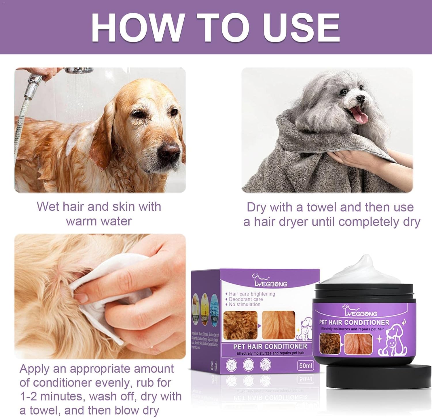 Navodila za uporabo: Po uporabi ustreznega šampona koncentriran balzam nanesite na dlako. Pustite delovati nekaj minut in temeljito izperite. Če je dlaka suha ali poškodovana, balzama ne izpirajte. Svojega ljubljenčka ovijte v brisačo in ga po nekaj minutah dobro skrtačite.