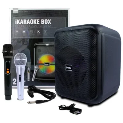 Brodu BTS-1740 je večnamenski Bluetooth karaoke zvočnik z 8-palčnim zvočnikom in močjo približno 30 W, idealen za domače karaoke, zabave ali druženja s prijatelji.