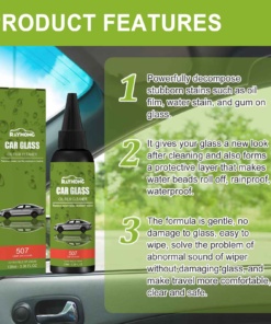 vsebuje ultimativno formulo 3v1 (razmaščuje, polira, hitro suši, da ne pušča sledi na steklenih površinah). Čistilo za steklene površine odstranjuje oljne ostanke ter zagotavlja kristalno jasno površino. Ne vpliva na predhodne zaščitne premaze na steklenih površinah. Čistilo je prijetnega vonja.