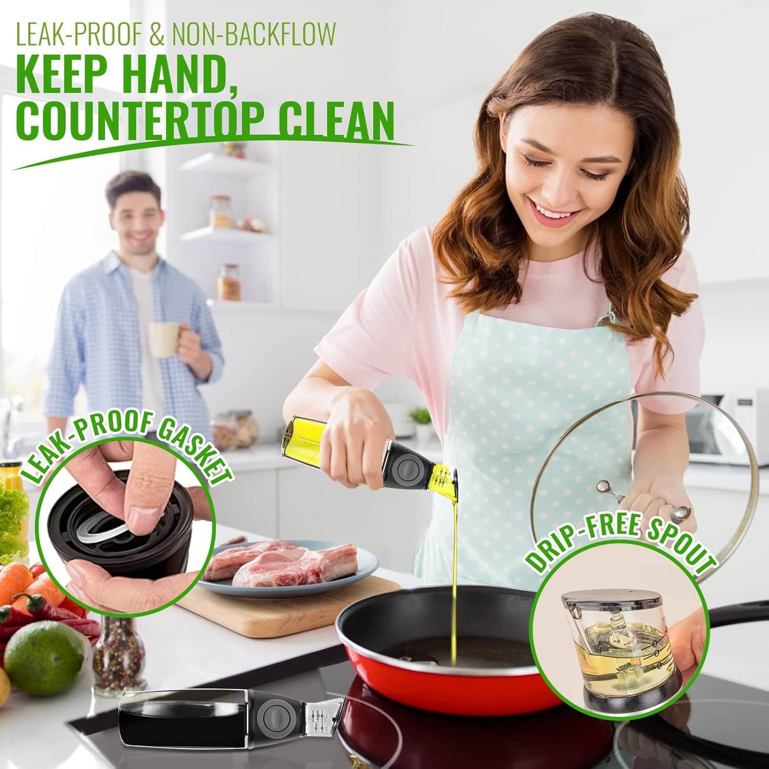 👍Dozirnik vam omogoča lažji nadzor nad količino olja, ki ga uporabite med kuhanjem.