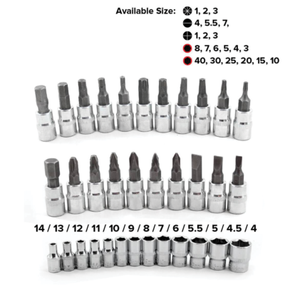 💠13 vtičnic (14 mm; 13 mm; 12 mm; 11 mm; 10 mm; 9 mm; 8 mm; 7 mm; 6 mm; 5,5 mm; 5 mm; 4,5 mm; 4 mm)