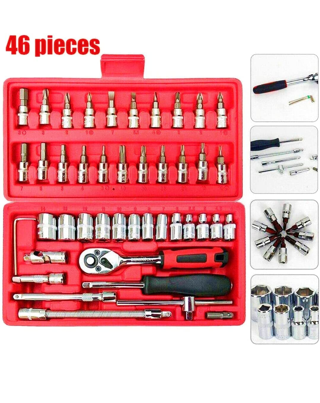 ✅Set je sestavljen iz 46 elementov ,ki je pakiran v praktičnem kovčku. Orodja se bodo uporabljala pri številnih popravilih v delavnicah ali doma, z njimi boste lahko privili številne vrste vijakov.