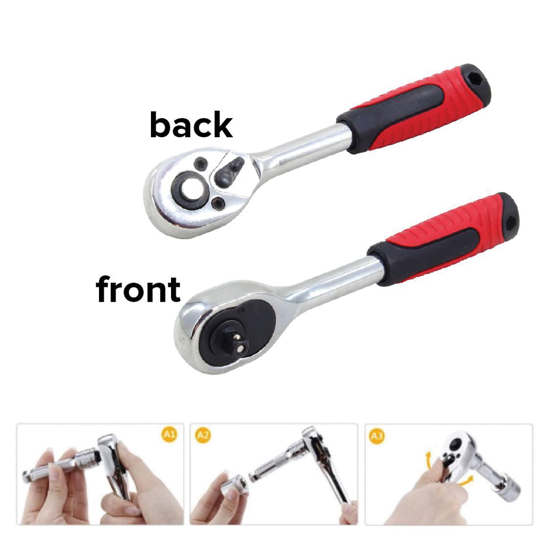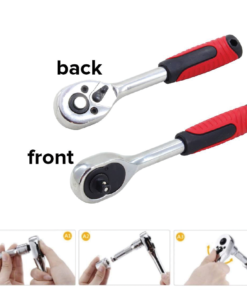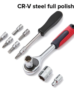 ✅Komplet je opremljen s številnimi nastavki, nastavki za izvijač, podaljški (vključno z fleksibilnimi), 2 vrstama gumbov – izvijačem in vzdolžnim, kardanskim zglobom, adapterjem in ragljo s stikalom, ki omogoča hitro in enostavno spreminjanje smeri vrtenja. Vsak od podaljškov, gumbov, raglje in kardanskega zgloba je opremljen s kroglico, ki preprečuje izpadanje kapice – izboljša učinkovitost dela in vpliva na udobje in varnost, nobena kapica med delom ne bo izpadla.