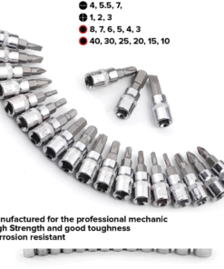✅Tehnična specifikacija: Material: visokokakovosten krom- vanadijevo jeklo Čitljiva oznaka konic Funkcionalnost seta Plastično ohišje z oznakami 46 elementov Dimenzije ohišja: 23,5cm x 12,5cm x 4cm