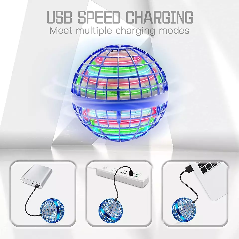 ⭐360° vrtenje – Enostavna uporaba tudi z daljinskim upravljalnikom. Ko je vklopljen, LED dioda zasveti in spiner se začne vrteti . Lahko nadzirate pot leta in se naučite novih trikov, kot so bumerang, navpično vzpenjanje, levitacija itd . Leteči dron ima vgrajeno polnilno baterijo , ki jo lahko polnite s kablom USB.