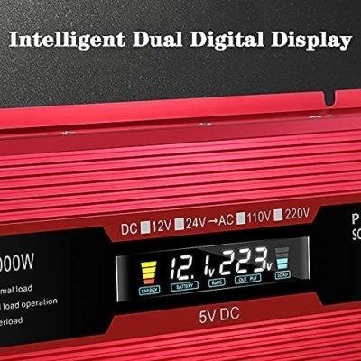 💯Inverter, DC12v/24V na 220v dvojno inverter, s samodejno zaščito pred preobremenitvijo, prenapetosti, nad temperaturo in kratkega stika.Aluminij zlitine lupina je močna, lepa in lahka, priročna in praktična.