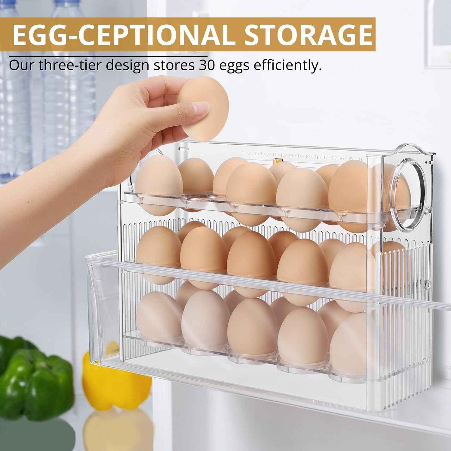 🍳Organizirati vaš hladilnik – Naše jajce škatle so lahko zložene v več plasti.Vsako jajce rack ima 30 rež in lahko imajo 30 jajca, ki je dovolj velika, da izpolni vaše dnevne potrebe.Ta gospodinjski hladilnik jajce polje lahko prepreči jajc od tega, da zdrobi in imejte jajca, nepoškodovani in sveže, tako da hladilnik ne bo razširila jajca ali jajčne lupine bo zdrobljen, in obdržati hladilnik čisto in urejeno.To je najboljši shranjevanje orodje za hladilniku.