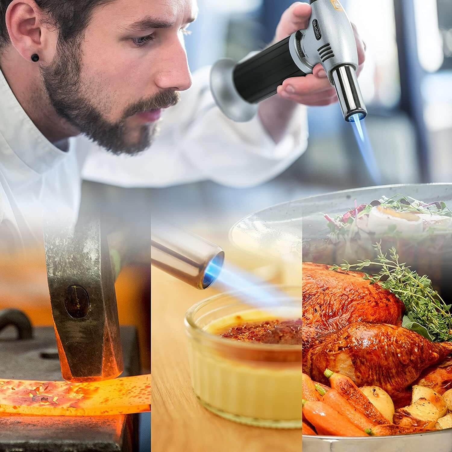 🔥Široka uporaba: vžigalnik ni samo za kuhanje v kuhinji in se lahko uporablja na več načinov; odličen je za sous vide, spajkanje, flambiranje, pečenje mesa, prižiganje ognja, cigare, žare za žar, za kampiranje ter za ročna in umetniška dela.