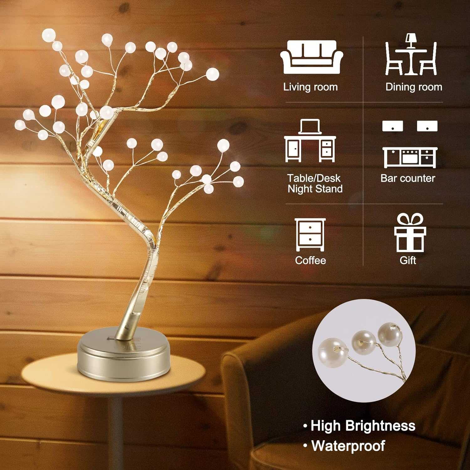 🌟Visoko kakovostno LED Drevo Svetilka – LED drevo svetilke so sestavljene iz 36 LED bakrene žice niz luči, touch senzor stikala, ABS baz in umetno podružnic.