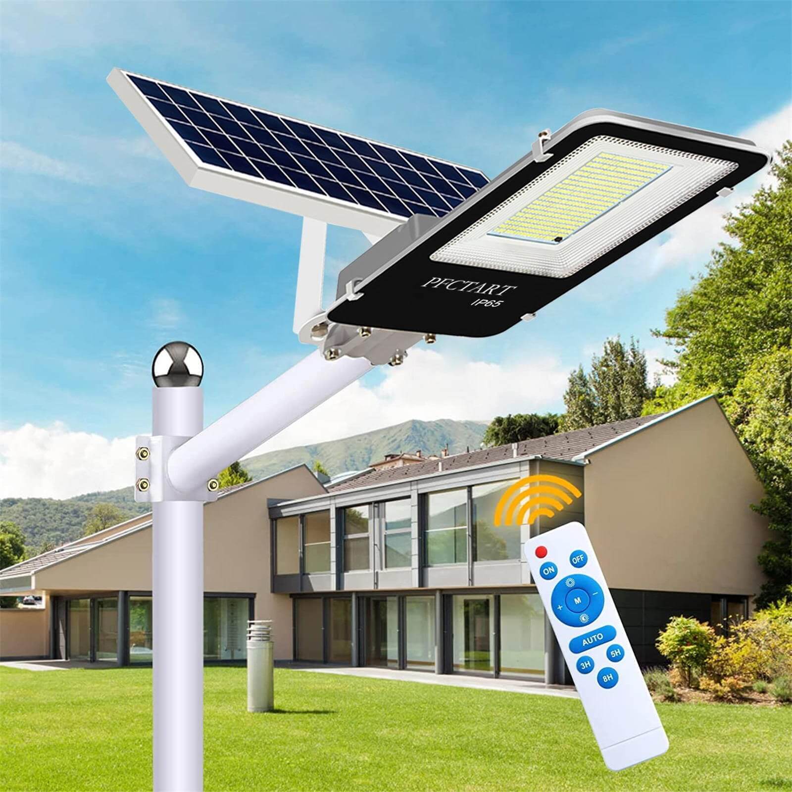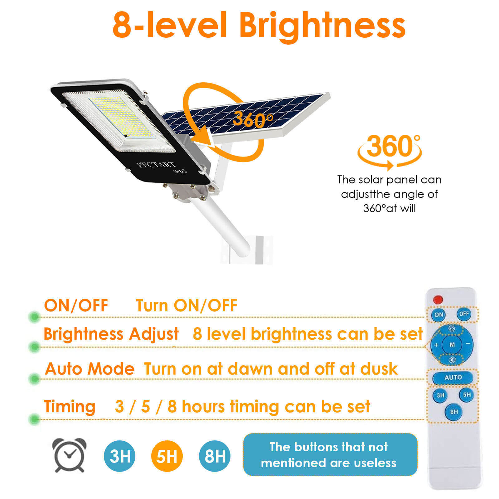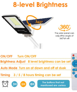 ☀️Daljinsko upravljanje: da je stikalo za vklop / izklop, samodejni vklop, 3, 5 ali 8-urni svetlosti + / – prilagoditve svetlosti.Daljinskim upravljalnikom lahko upravljate do 33 metrov (približno 10 m).