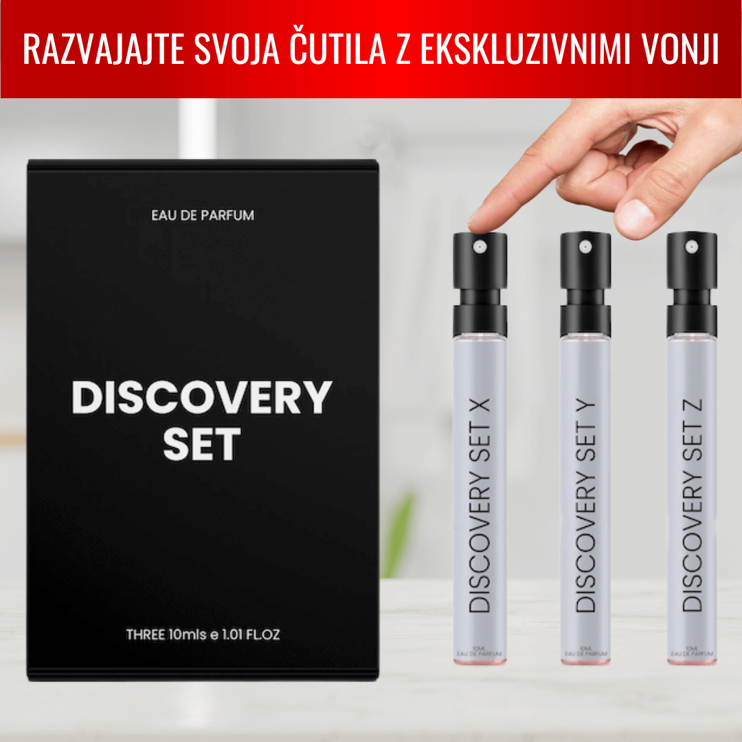 Discovery Set ni le zbirka parfumov; je povabilo k raziskovanju. Vsak vonj v kompletu je natančno zmešan z vrhunskimi sestavinami, pridobljenimi z vsega sveta. Od svežih, svežih not citrusov do globoke, dimljene privlačnosti redkih gozdov, vsaka steklenička pripoveduje zgodbo o avanturi in prefinjenosti.