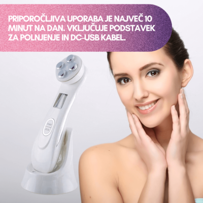🌟Zaradi lahke, polnilne in prenosne zasnove je enostaven in priročen za uporabo, transport in shranjevanje. Ima LCD zaslon in samodejni izklop. Napravo uporabljamo tako, da z rahlim pritiskom in nežnimi krožnimi gibi drsimo po koži, ki jo želimo zdraviti oz. obdelati. Da bi dosegli optimalen rezultat, je potrebno kožo predhodno temeljito očistiti in nanesti običajno kremo/serum. Priporočljiva uporaba je največ 10 minut na dan. Vključuje podstavek za polnjenje in DC-USB kabel.