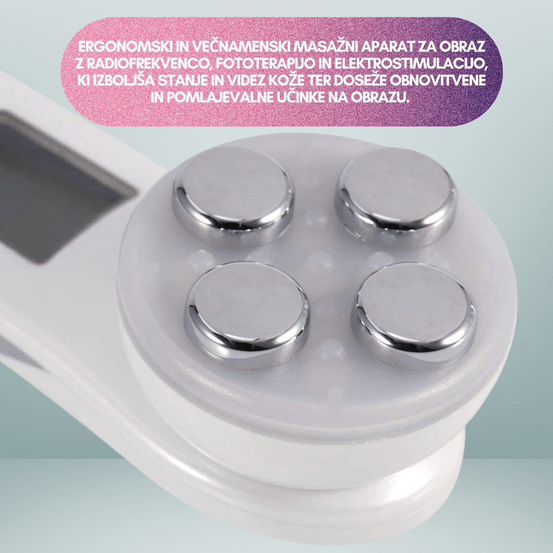 🌟Ergonomski in večnamenski masažni aparat za obraz z radiofrekvenco, fototerapijo in elektrostimulacijo, ki izboljša stanje in videz kože ter doseže obnovitvene in pomlajevalne učinke na obrazu.