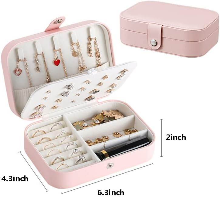 💎Kompakten in eleganten dizajn: Ta škatlica za nakit ima elegantno površino iz PU usnja in mehko žametno podlogo, ki ščiti vaš nakit. Opremljen z več predelki in držali za priročno in organizirano shranjevanje različnih vrst nakita.