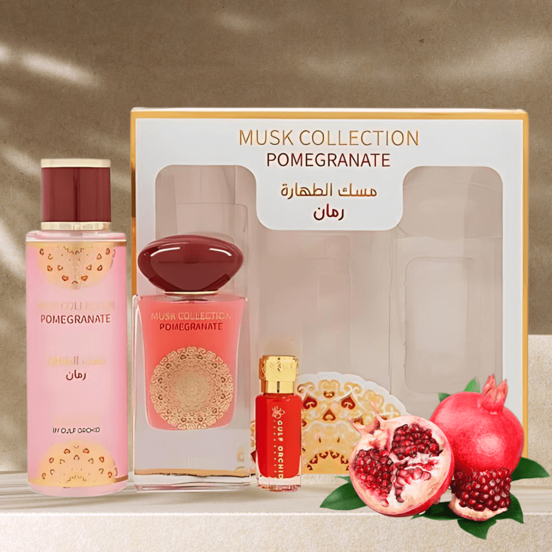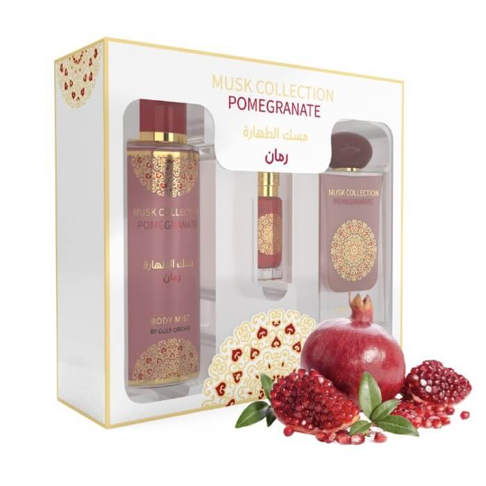 Darilni set Musk Tahara Pomegranate je podoben parfumom s svežim, sadnim in rahlo sladkim vonjem, kot sta Versace Bright Crystal in Dolce & Gabbana L’Imperatrice.