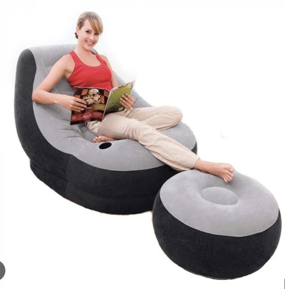 Napihljiv stol s taburejem Ultra Lounge Relax je odlična izbira za kampiranje ali sproščanje v udobju doma. Zahvaljujoč posebnemu ventilu boste lahko izdelek hitro napihnili in izpraznili. Po deflaciji postane zelo kompakten za preprosto shranjevanje.