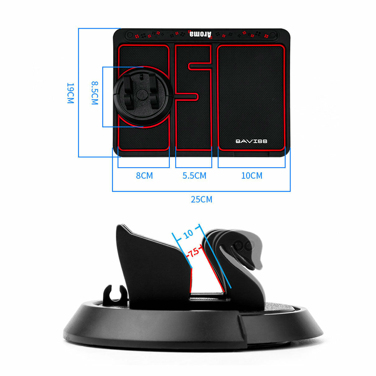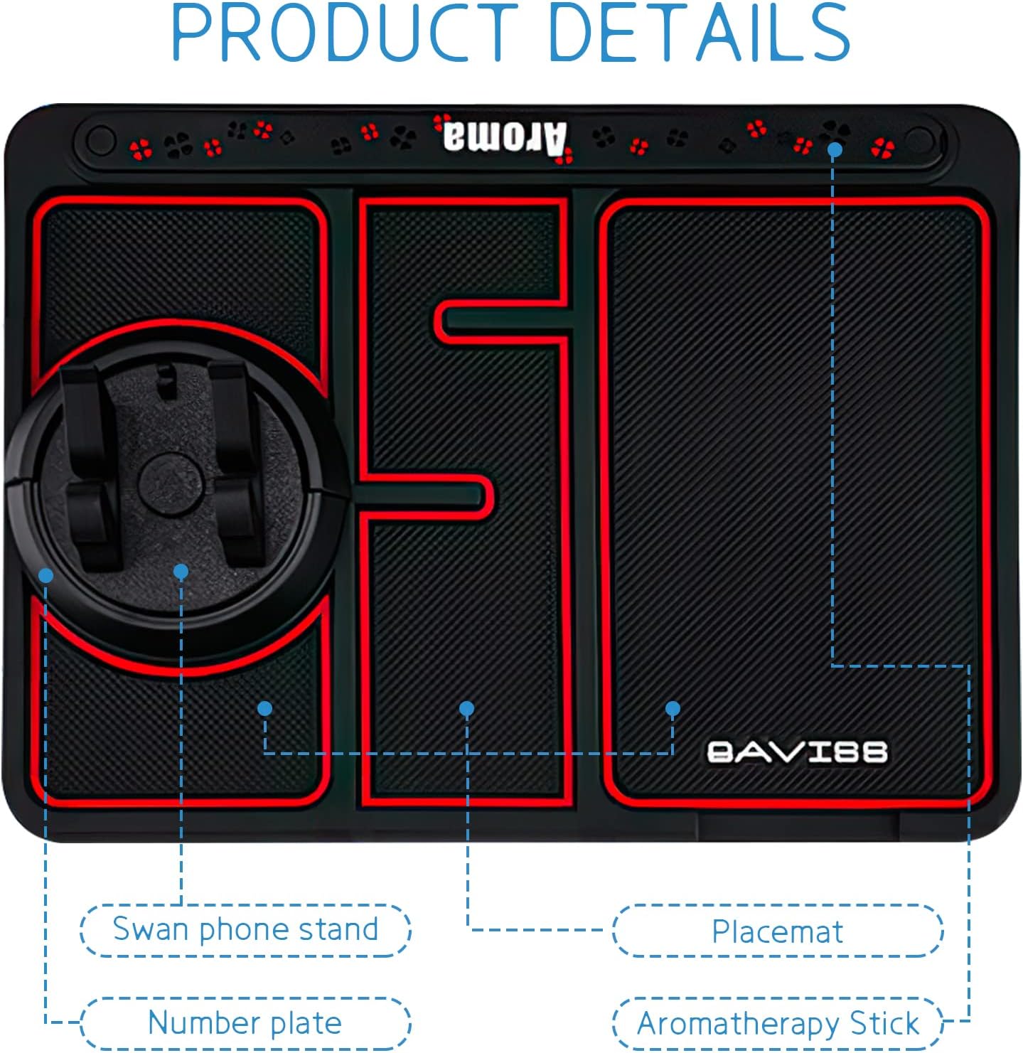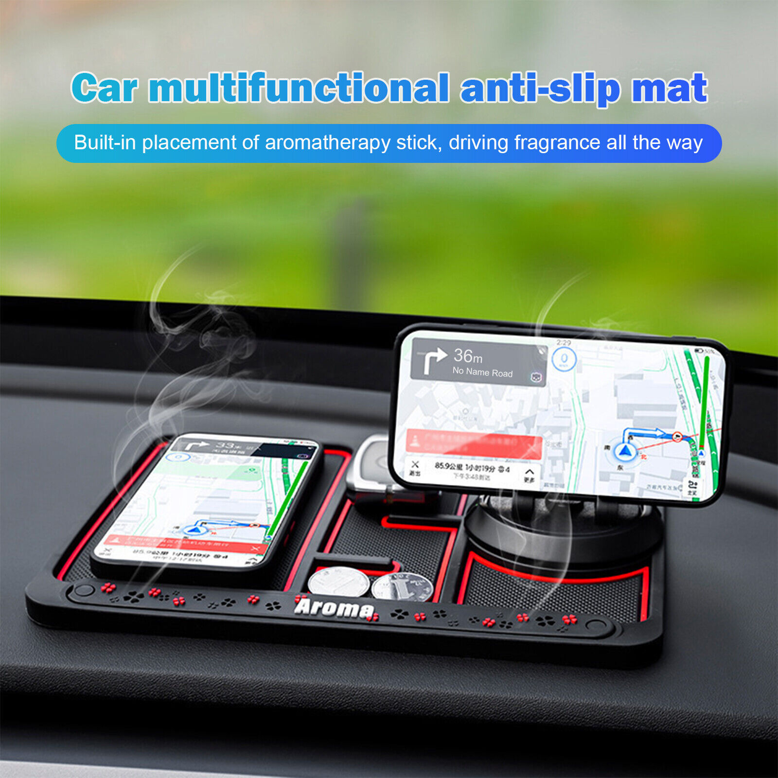 🌺Vgrajen aromaterapija – polje: Naš avto drsenju blazine so namerno s štiri deteljico luknje okoli robov.Lahko vstavite vaš najljubši aromaterapija – stick (vključeni) neposredno, naj ga oddajajo vonj skozi luknjo, in razpršeno posebnih vonjav v vašem vozilu.Hladno svetlobo učinek: anti-slip telefon pad odboj svetlobe povsem čez dan in vidi fluorescence, ko je utripa na noč.