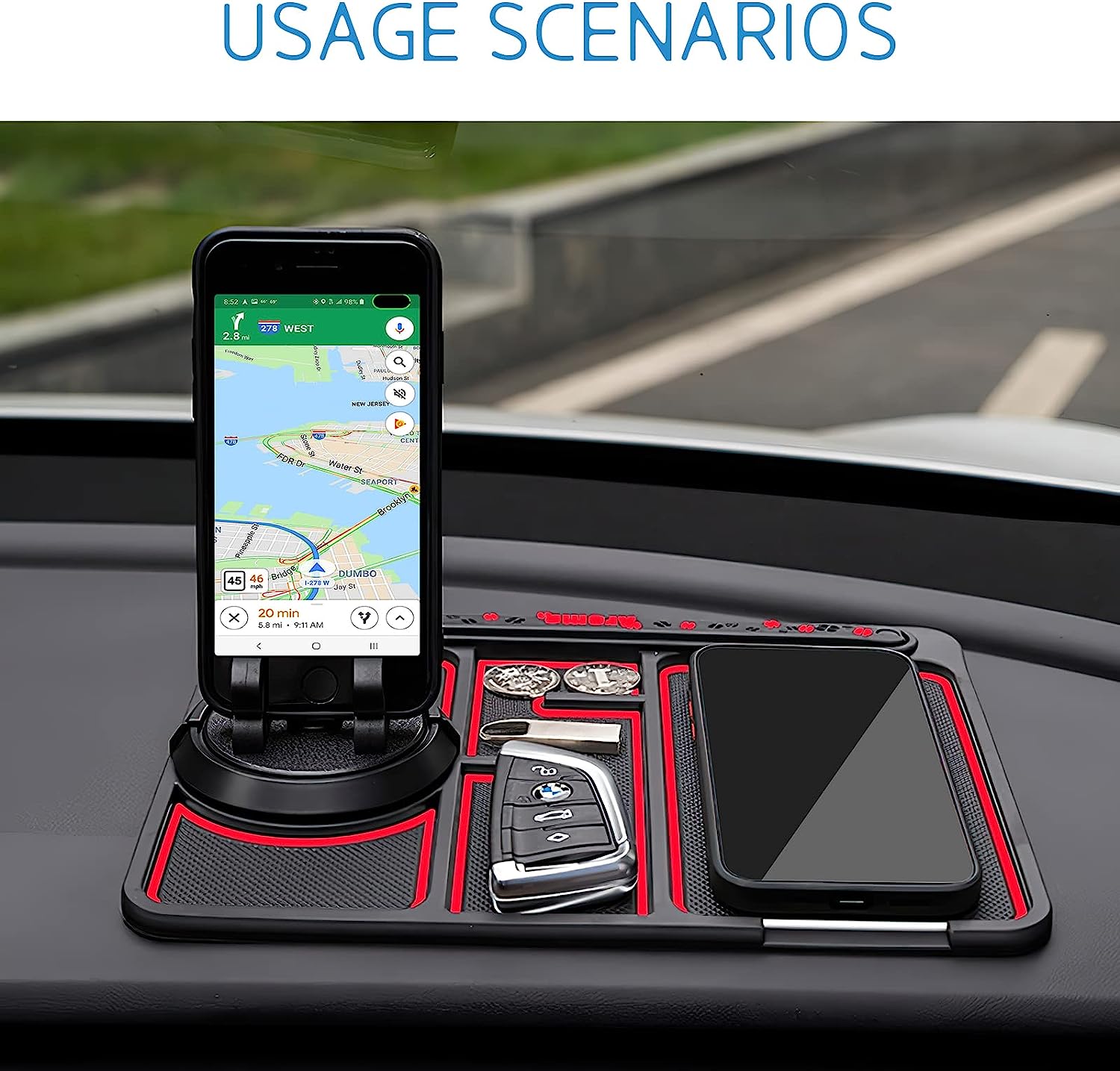 🌺4-v-1 Avto Anti-Slip Telefon Pad: celoto multi-funkcionalne anti-skid blazine, brez zapletenih namestitvene postopke, ne magneti, vijaki ali zapletenosti sesalno pokal, enostaven za namestitev in uporabo.