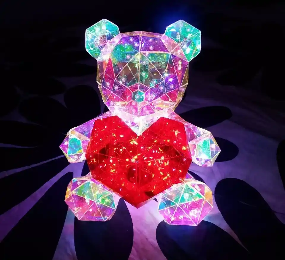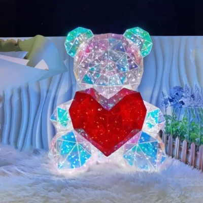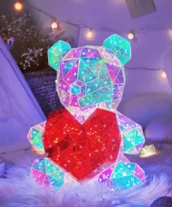 💖Osvetlitev plišastega medvedka – 40 cm darilo za žensko s 3D sijajem LED barve 8 načinov osvetlitve kot lepo darilo za – dekle, ženo, fanta, prijatelja. Ima elegantno lučko, ki ustvarja 3D učinek , napaja pa jo LED dioda USB. Ponuja do 8 različnih načinov osvetlitve, kar vam omogoča prilagajanje atmosfere glede na vaše razpoloženje ali potrebe. Ne glede na to, ali iščete nežno nočno lučko ali ambientalno osvetlitev za večer, je ta medvedek odlična izbira.