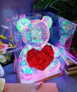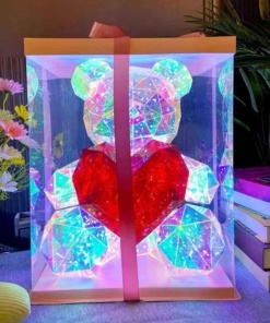 Podarite nekaj nepozabnega in izvirnega. LED svetleči medvedek je v čudoviti svetlo roza škatli s prozornim plastičnim pokrovom in pentljo, zaradi česar je odlično darilo za vsako priložnost. Je popolno darilo za vašo partnerko, hčerko, mamo ali dekle za rojstni dan, valentinovo ali samo za polepšanje dneva. Poleg tega je ta medvedek z USB napajanjem praktičen in ekološki, kar bodo cenili vsi, ki imajo radi inovativne in trajnostne izdelke.
