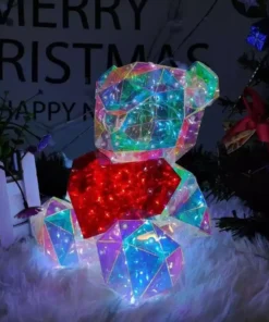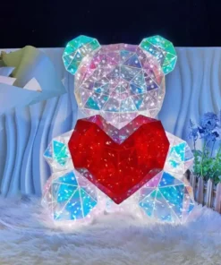 Medvedek je izdelan iz visokokakovostnih materialov, kar mu zagotavlja dolgo življenjsko dobo in vzdržljivost. Z merami 33 × 26,6 × 40 cm se prilega vsakemu prostoru, zahvaljujoč zaščitnemu sloju na prozornih delih darilne škatle pa je zagotovljen varen transport. Priporočamo, da pred prvo uporabo odstranite zaščitno plast, da izkoristite njegov polni svetlobni potencial. Pustite se očarati mehki svetlobi in dopolnite popolno vzdušje v vsakem kotičku vašega doma z našim LED svetlobnim medvedkom.