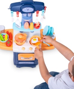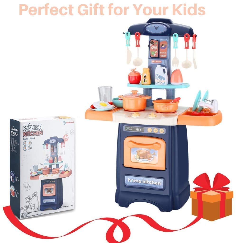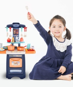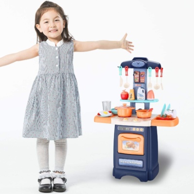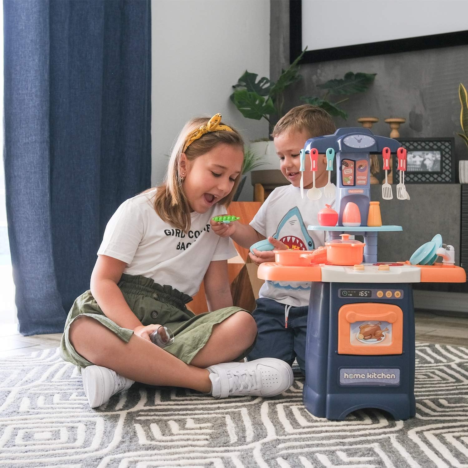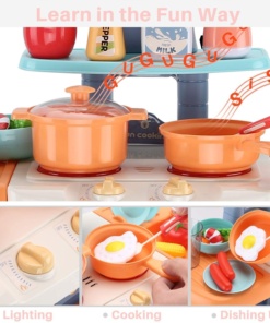 😊Otroška kuhinjska miza vključuje štedilnik za igro z realistično svetlobo in zvoki, pršilo, umivalnik, kuhinjski pripomočki.