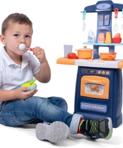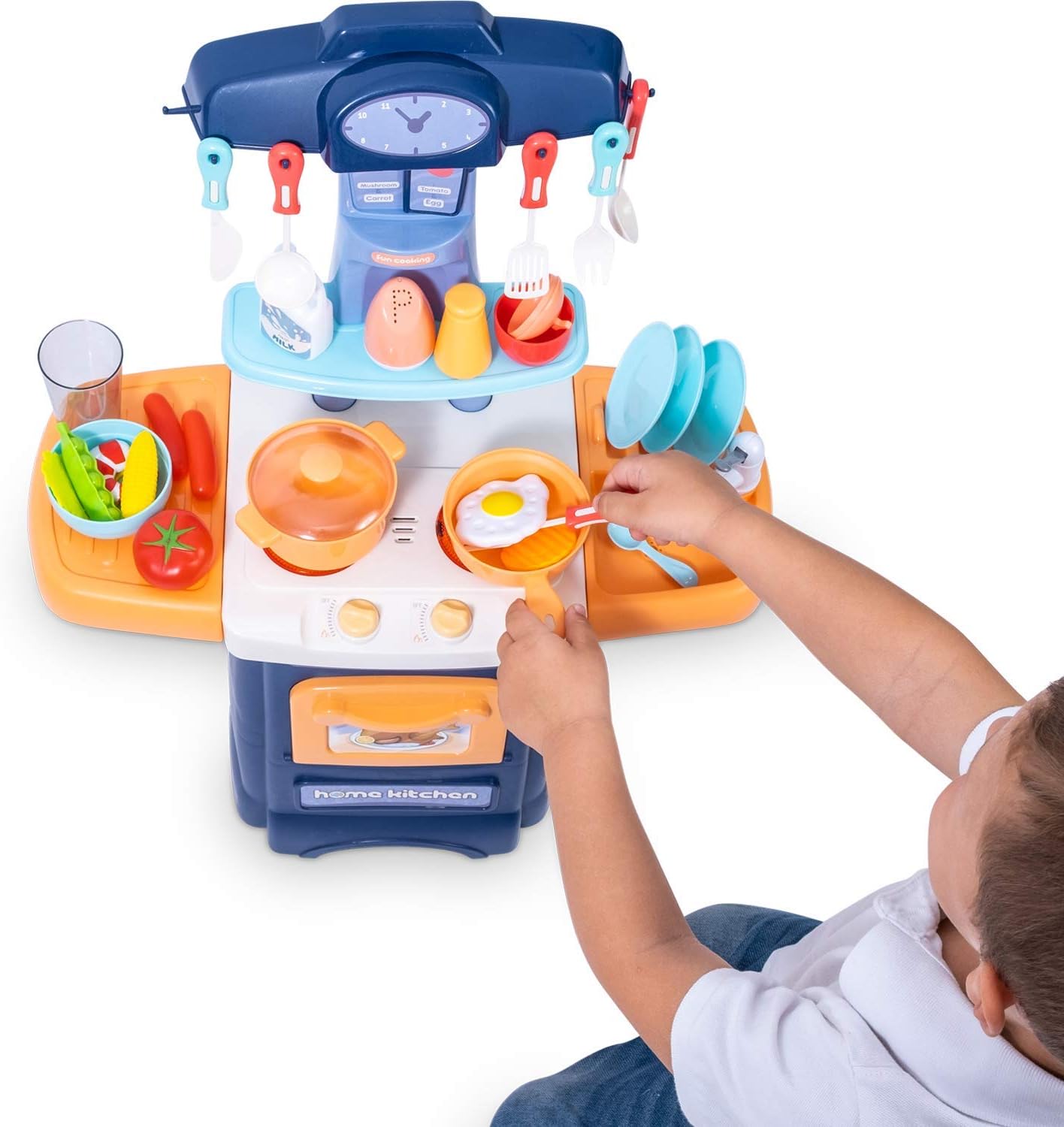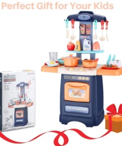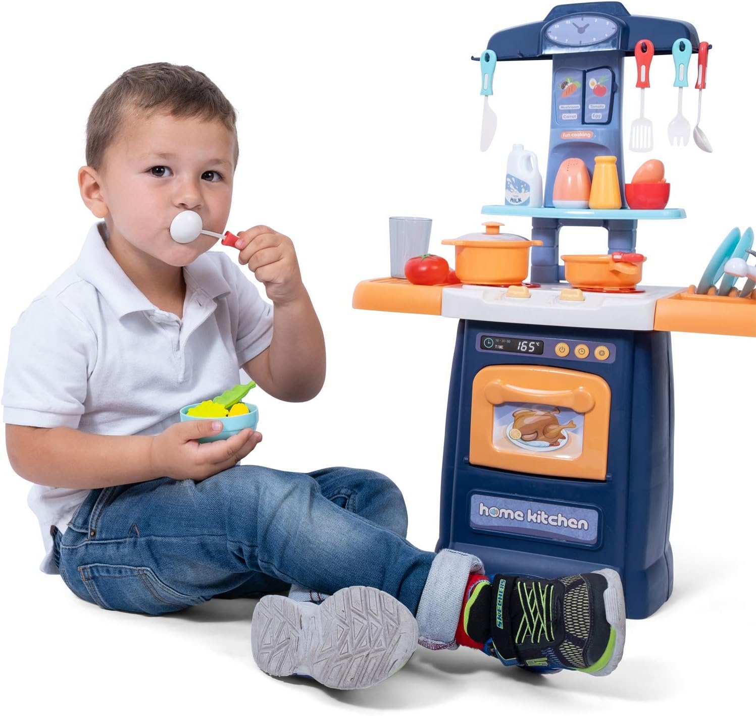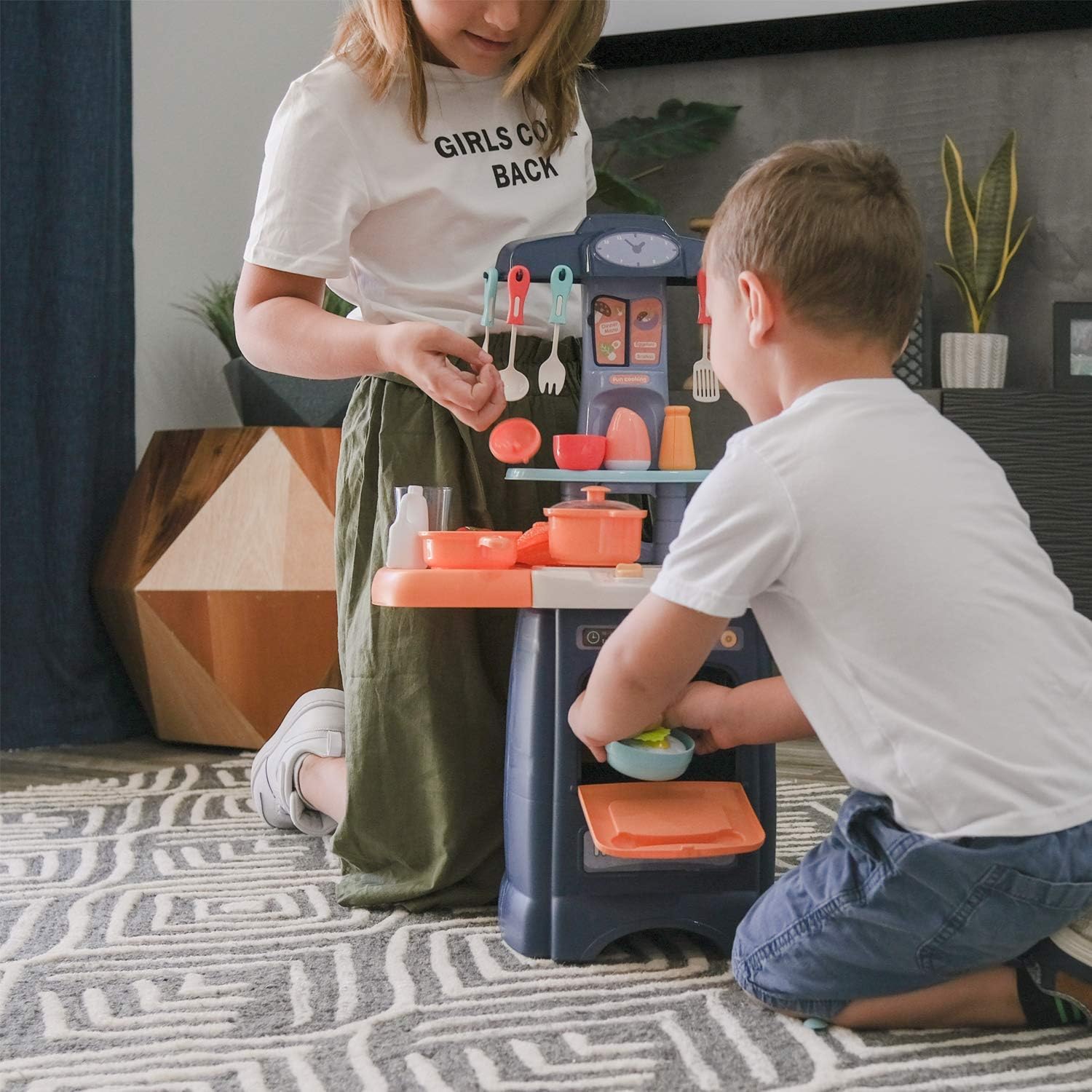 😊Otroška kuhinjska miza vključuje štedilnik za igro z realistično svetlobo in zvoki, pršilo, umivalnik, kuhinjski pripomočki.