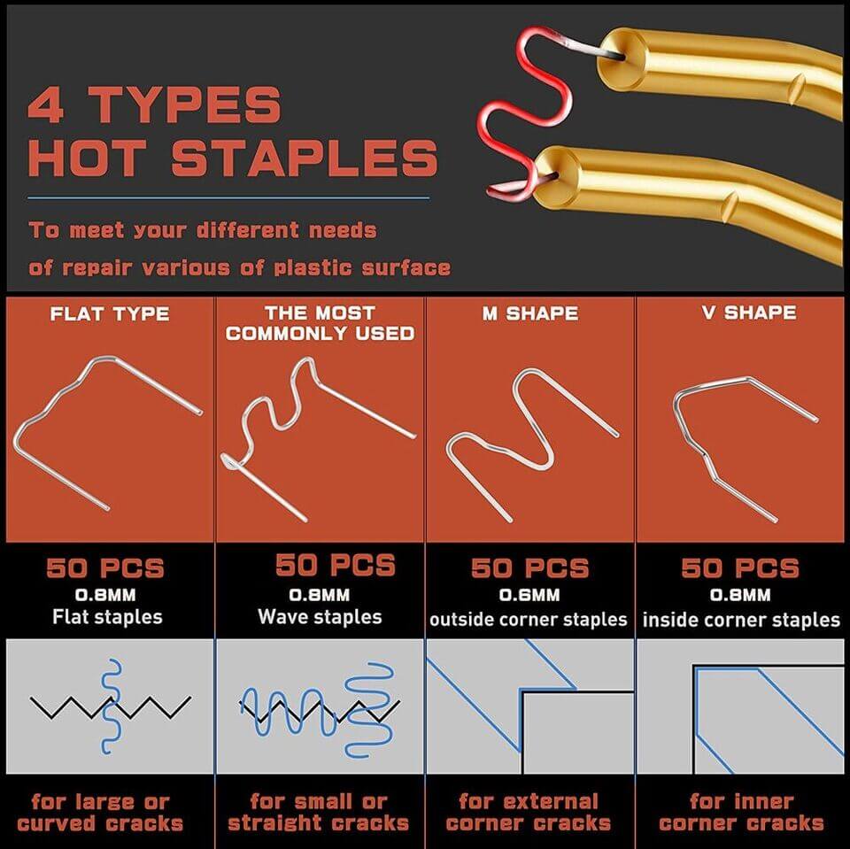 Sponke iz nerjavečega jekla so štirih različnih vrst, ki se prilegajo vašim različnim potrebam. Obnovite polomljene dele in podaljšajte življenjsko dobo predmeta. Z varjenjem plastika ne bo več razpokala in bo primerna za nadalnjo uporabo.