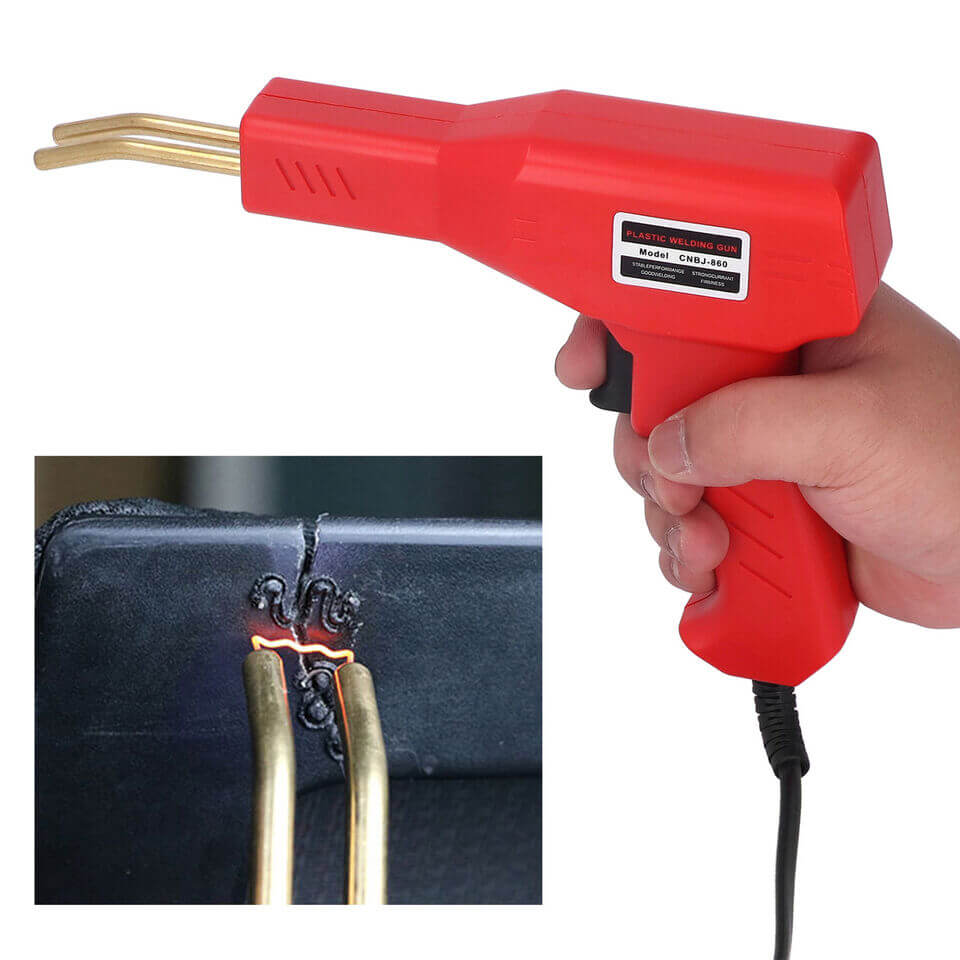 Izberite primerne sponke za varjenje glede na razpoko plastike, vstavite medeninasto držalo in pritisnite gumb za vklop. V dveh sekundah se bo varilec segrel. Prislonite sponko na želeno mesto in počakajte, da se plastika počasi stopi. Bodite pozorni, da ne boste predmeta preluknjali.
