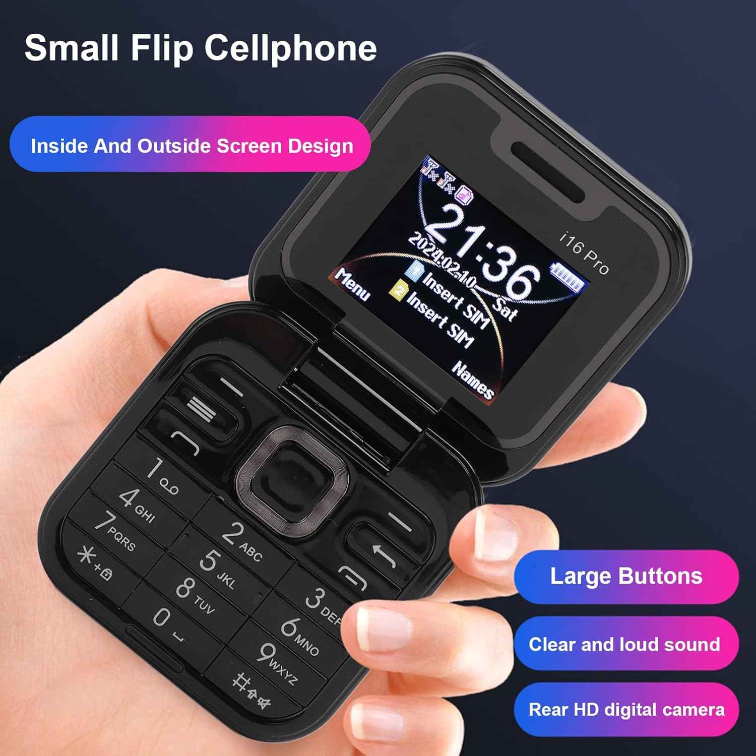 ⭐MINI DIZAJN: Preklopni mobilni telefon ima mini ohišje, ki tehta 80 g/0,63 oz, kompaktno in izvrstno. Podpira tudi kartico SIM, zato vam za uporabo ni treba povezovati drugih telefonov.