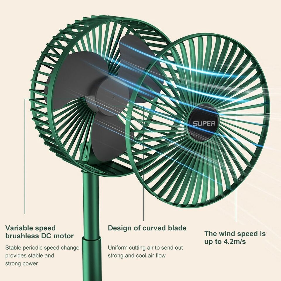🌟1. Edinstveno izvlečno in zložljivi design, enostaven za prevoz.To je mogoče zložiti in razširjene kot namizni ventilator in se lahko podaljša do 90CM kot navpično fan.