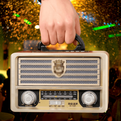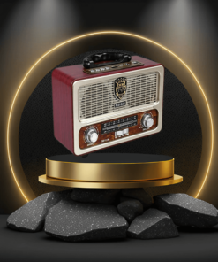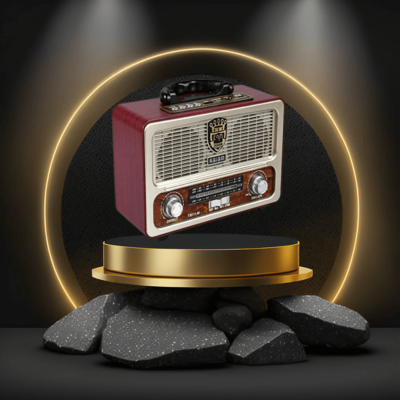 💯Kvalitetno ohišje ima obliko starega radijskega tranzistorja, za katerega so značilni okrogli gumbi, vodoravne reže in bakrene barvne kombinacije.