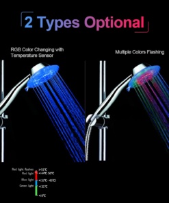 💠temperatura vode tipalo: tuš glavo funkcija LED barvna lučka samodejno spreminja v skladu z temperatura vode.Modra (0 ~ 29 ℃), Zelena (30-39℃), Rdeča (≥ 40 ℃)