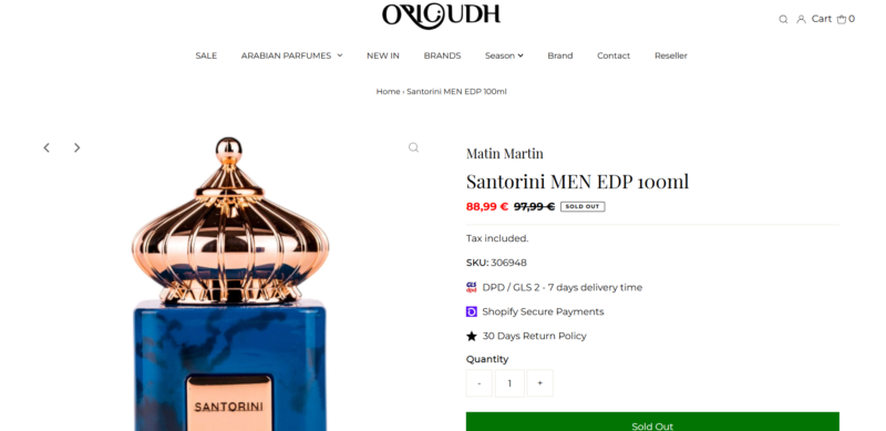 Santorini EDP 100ml je podoben parfumom Creed Aventus, Tom Ford Oud Wood in Dior Sauvage.