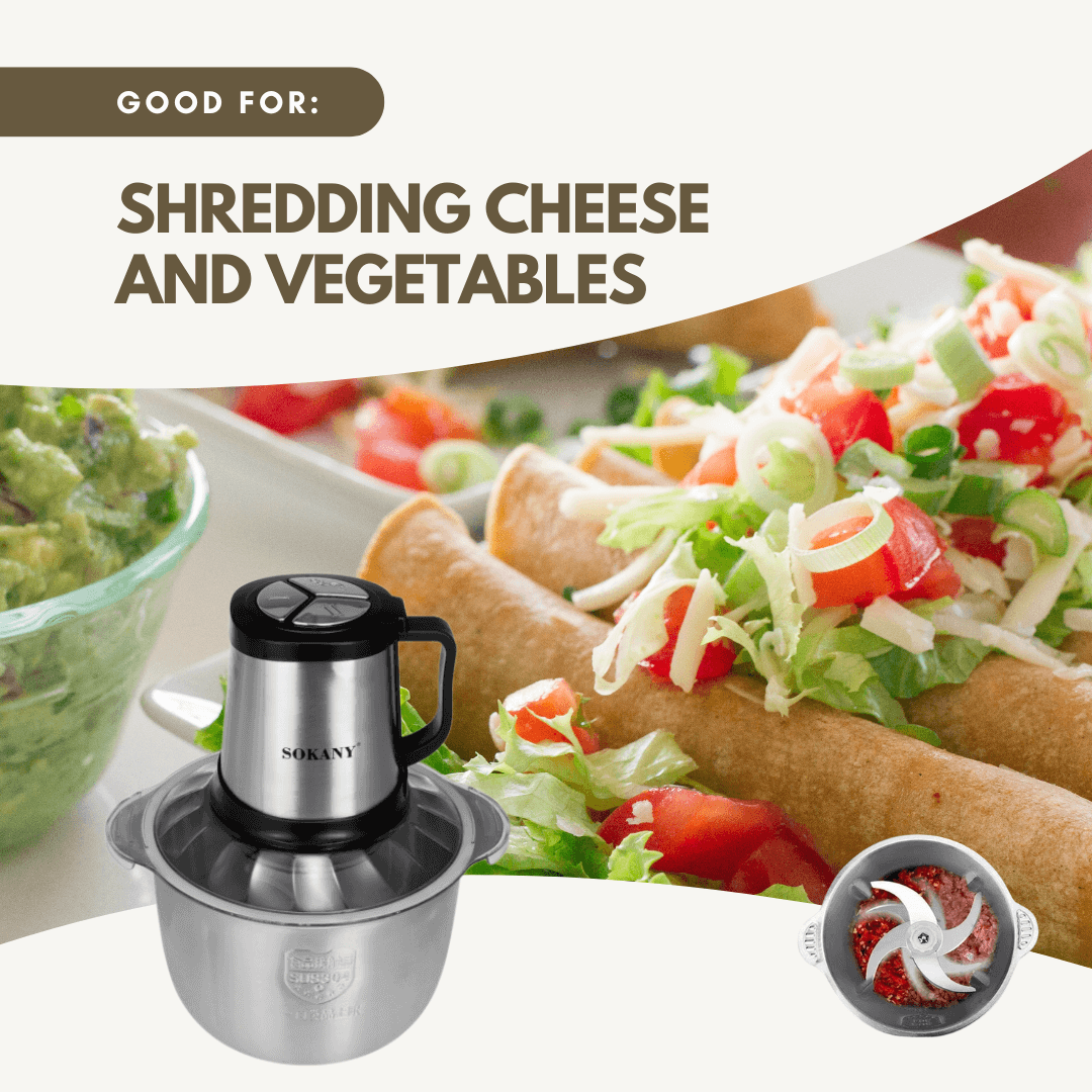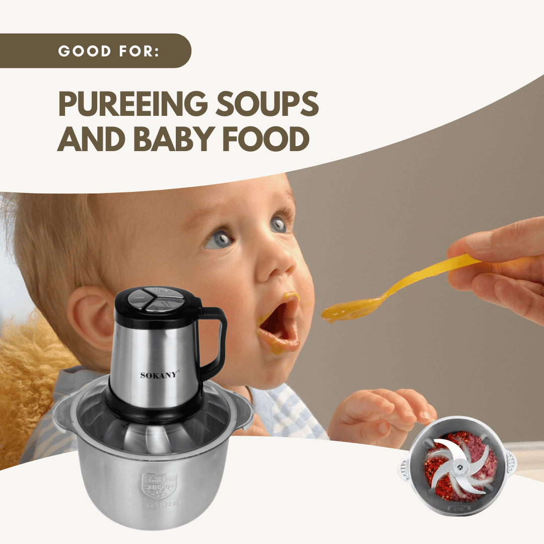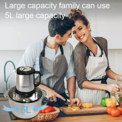 🥦Sekljalnik hrane SOKANY bo tvoj novi pomočnik pri sekljanju vse vrste hrane in živil, tudi najtrših. Rezila iz nerjavečega jekla omogočajo sekljanje in drobljenje različnih kosov zelenjave, sadja, mesa, kruha, oreščkov ali ledu! Moč motorja s 800 W, 2 hitrosti in dodatna pulzna funkcija vas bodo navdušili pri enostavni in zdravi pripravi hrane. V prostorni 5-litrski posodi boste lahko sekljali brezskrbno, za vso družino. Odličen je tudi za pripravo večih otroških obrokov, vse v eni posodi. Minimalistični dizajn v črni in inox barvi bo navdušil tudi vse ljubitelje elegance v kuhinji.