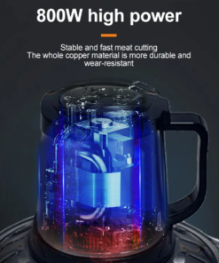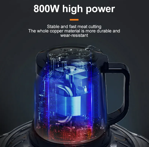 Zmogljiv in trpežen 800-vatni motor omogoča hitro sekljanje sadja, zelenjave, mesa, začimb in ostale hrane. Rezila iz nerjavečega jekla zdrobijo tudi najtršo hrano – led, zamrznjeno sadje ali oreščke. Učinkovito delovanje naprave bo navdušilo vse tiste, ki ne obožujejo sekljanja čebule s solzami v očeh ali pa dolgotrajno sekljanje druge zelenjave, mesa, oreščkov, ali celo čokolade.