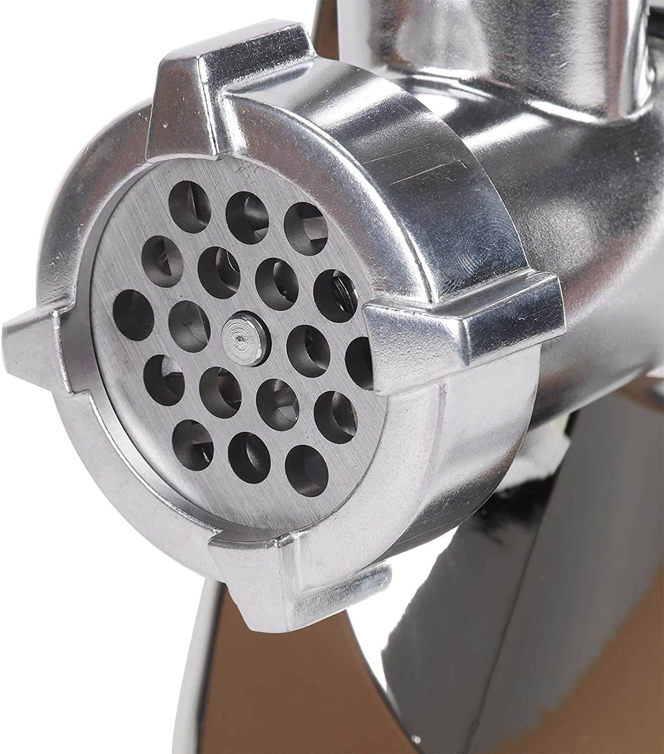 💖Z delovno močjo 2800 W bakreni motor našega mlička za meso Silver Love vrti glavo s polžjim nastavkom in rezila iz nerjavečega jekla v dveh izbirnih hitrostih. Na ta način se kosi mesa neumorno zmeljejo in potisnejo skozi tri vrste diskov z luknjicami – fine, srednje in grobe. Na drugi strani vas bo čakalo sveže mleto meso, ki ga lahko nadalje predelate v kotlete, sveže polpete ali kot nadev za zvitke in podobno. V veliki aluminijevi posodi lahko meso dobro začinite in si pripravite domače klobase s posebnim nastavkom. Jetra ali klobase za peko, izbira je vaša. In če kos mesa po naključju ostane v polžu, se sprosti s funkcijo delovanja v nasproti smeri ali z izredno močno blokirno močjo 2800 W.