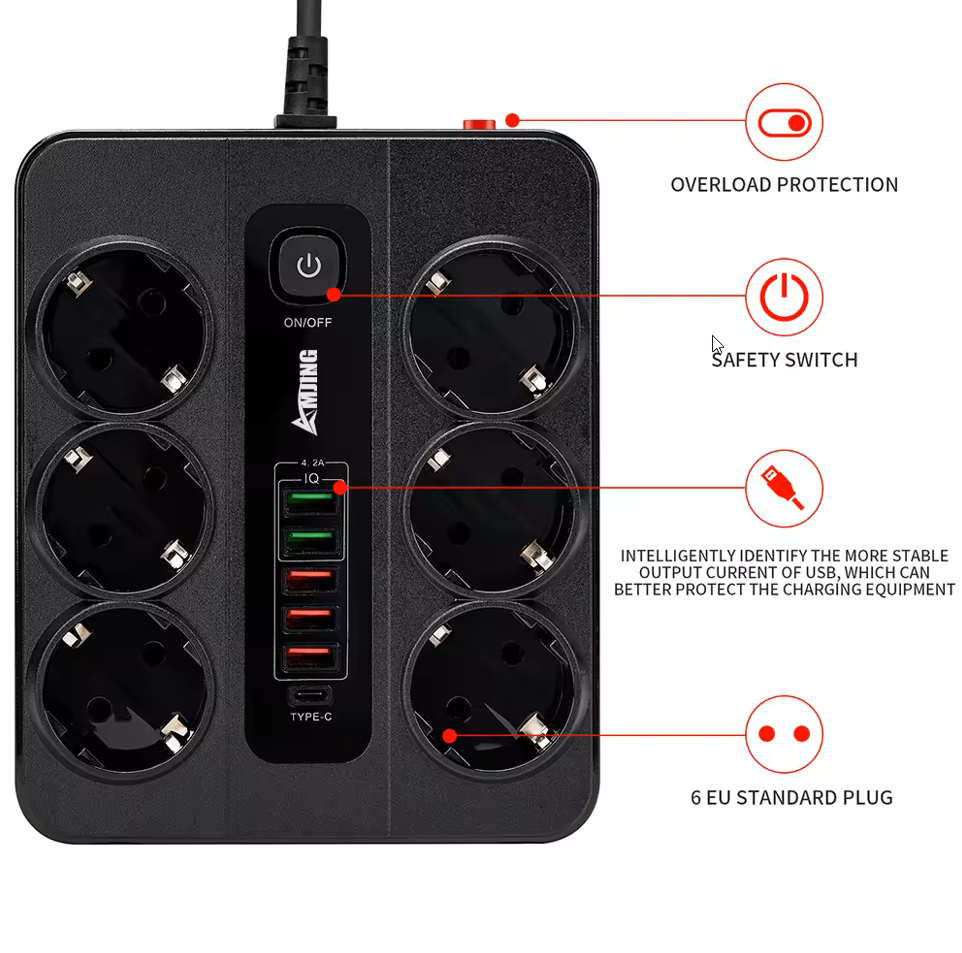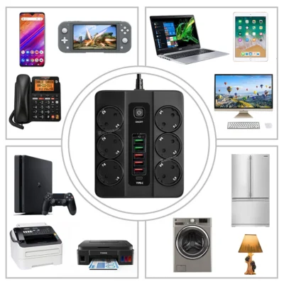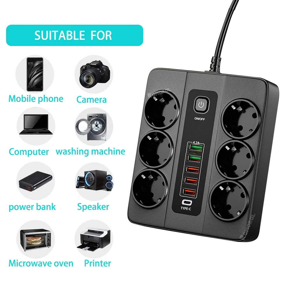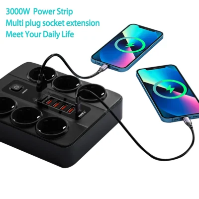 ✅AC adapter 3000 W s 6 vtičnicami EU + 6 USB (1 * Typec + 5 * USB-A)
