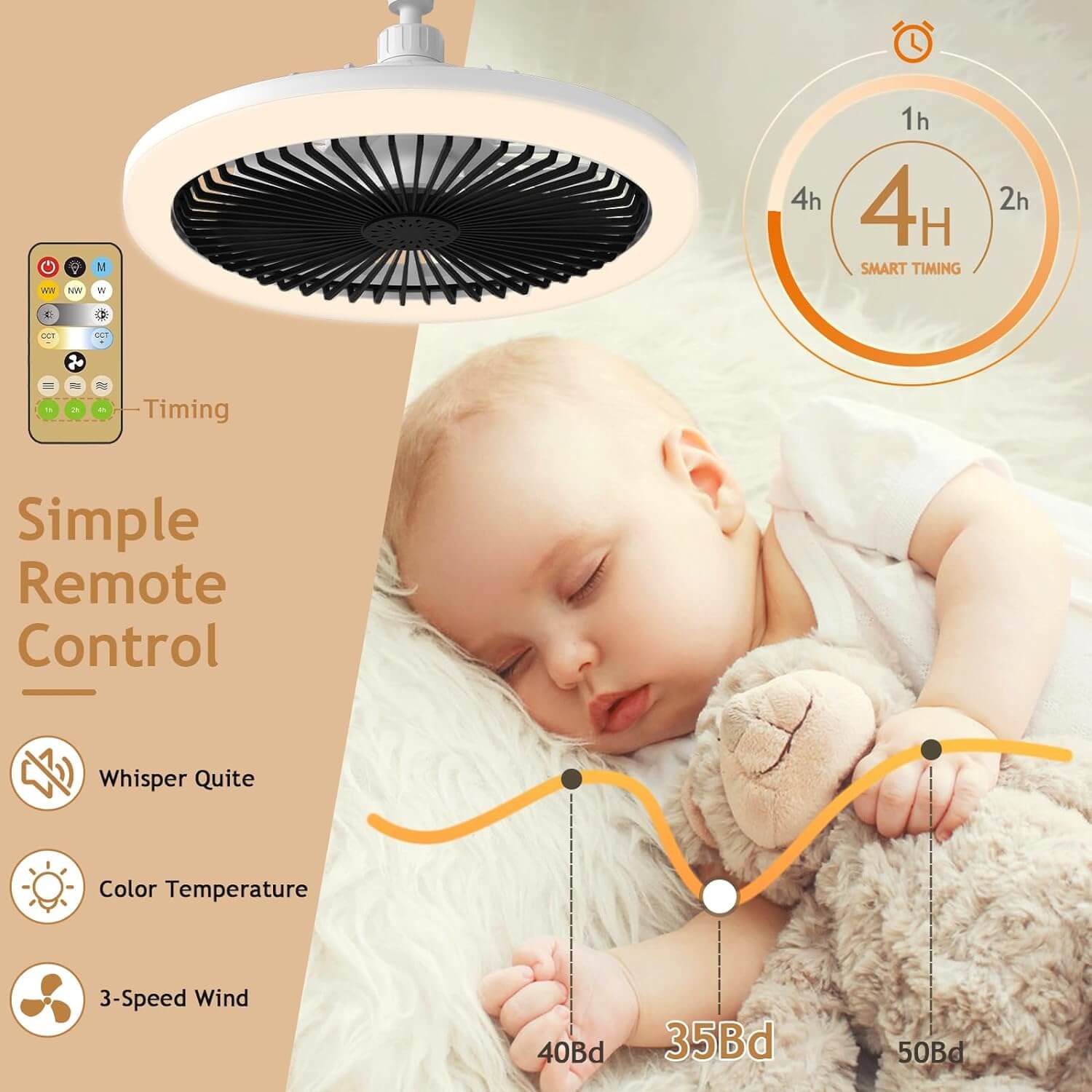 💯3. Obilico Funkcij – Ne samo, LED žarometov za E27 luči, vendar tudi ventilator, Ventilator Svetloba je z časovnik za 1h 2h 4h, enostaven za uporabo, daljinski upravljalnik, 2 v 1 design.