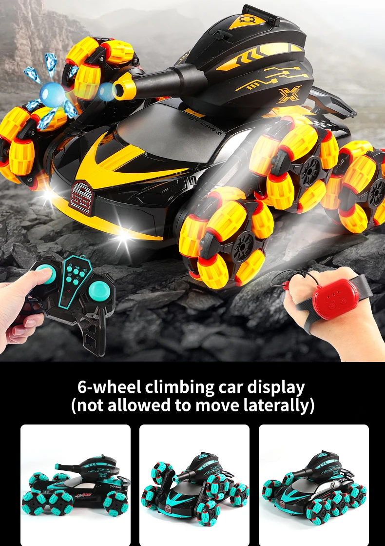 Tank lahko upravljate bodisi z gestami s pomočjo zapestnice, bodisi z daljinskim upravljalnikom in tako med streljanjem izvajate zabavne trike.