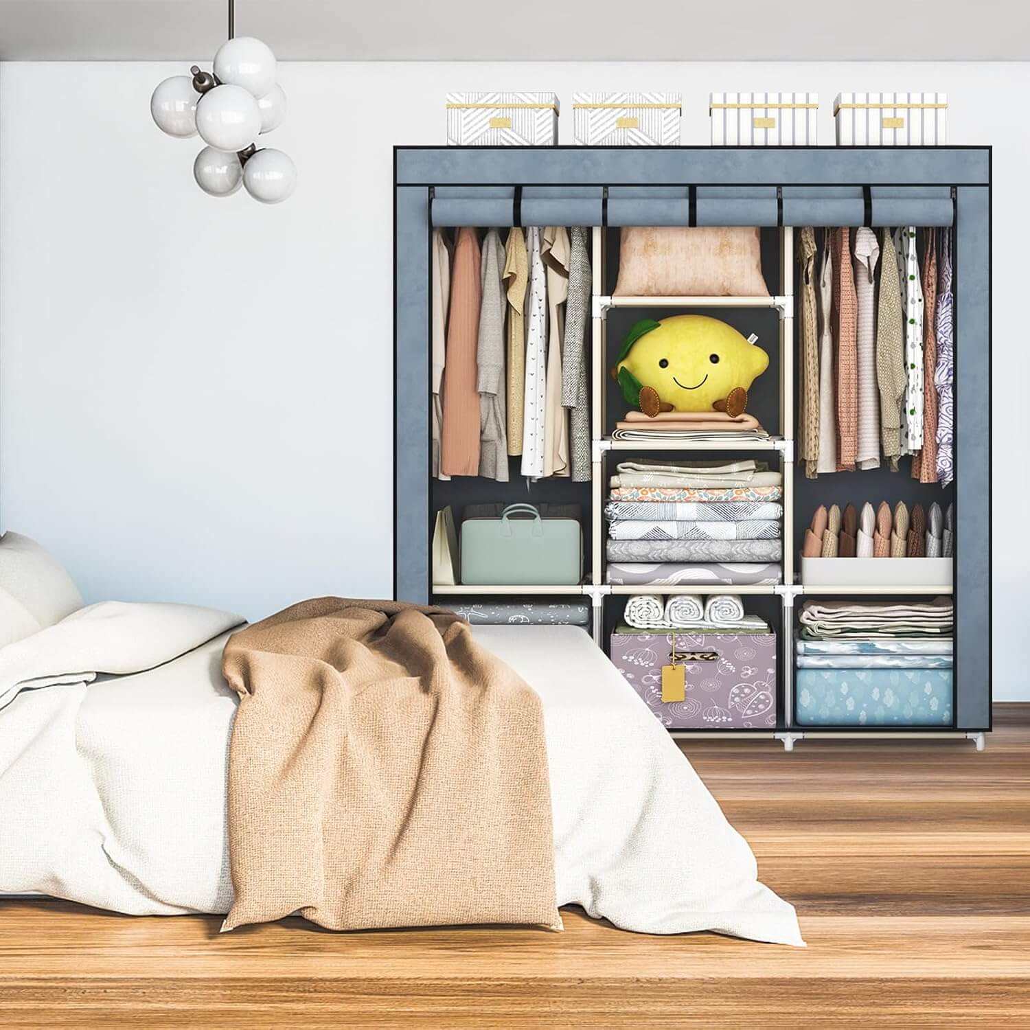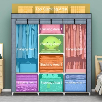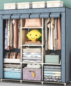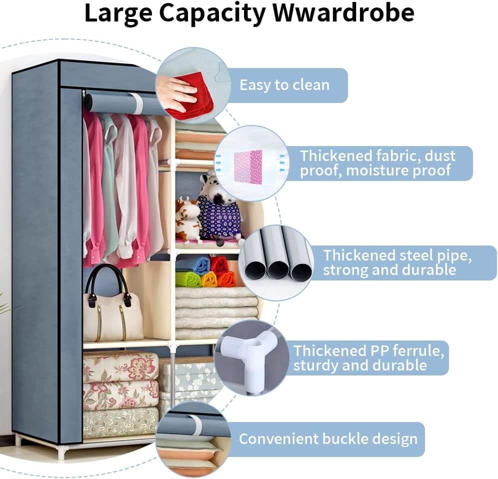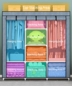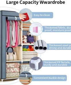 Organizirajte svojo garderobo in uživajte v dodatnem prostoru zahvaljujoč naši veliki garderobni omari iz blaga. Ta garderobna omara, oblikovana z mislijo na zmogljivost, eleganco in funkcionalnost, bo izpolnila vaša pričakovanja.